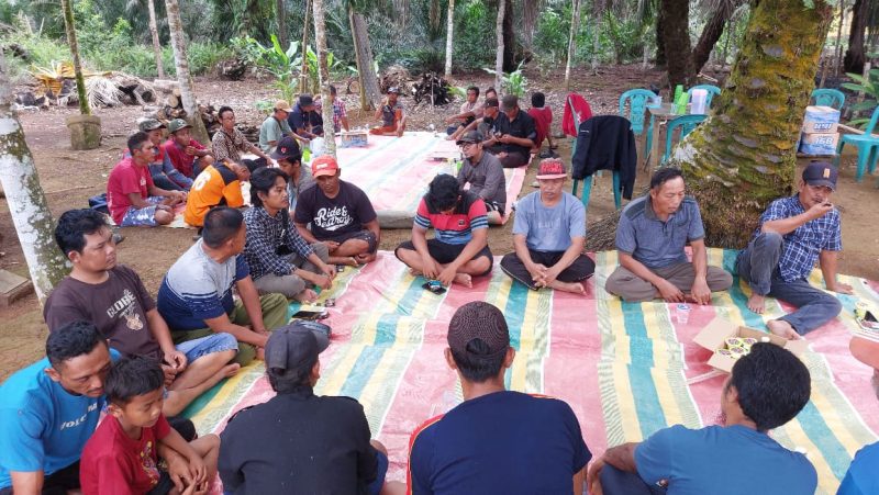 Bertempat di Kediaman Muhammad, Ketua Kelompok Tani Berkah Saudara, dihadiri sebagian besar Anggota Kelompok Tani di halaman terbuka suasana keakraban terlihat antar anggota.