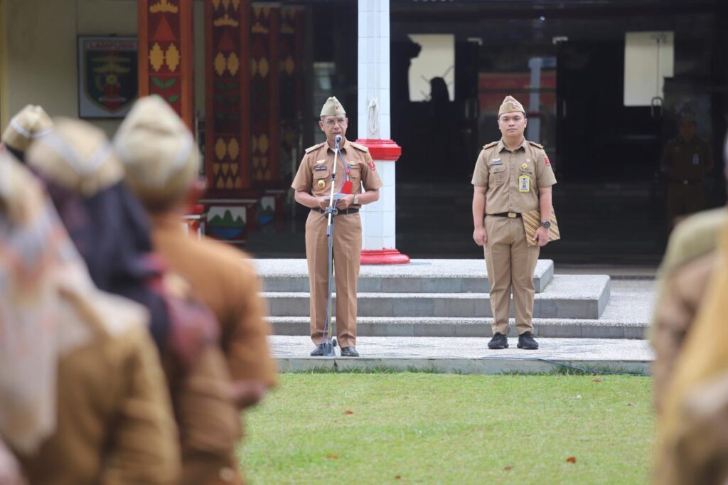 Penyerahan penghargaan dilakukan disela upacara mingguan Pemerintah Kabupaten Lampung Barat di halaman kantor bupati setempat, Senin (23/12). Penghargaan berdasarkan keputusan Bupati Lampung Barat Nomor B/34/KPTS/05/2024.