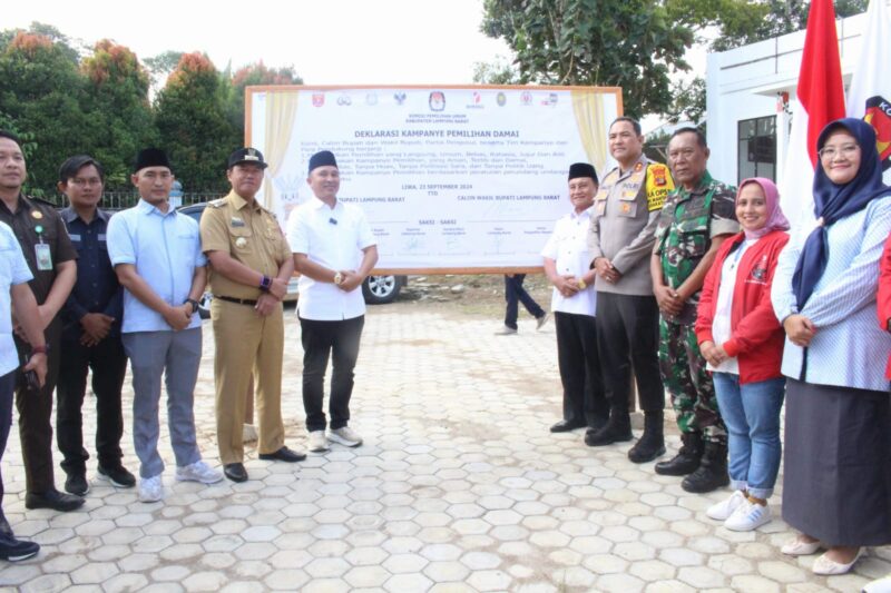 Unsur Forkopimda Lampung Barat yang hadir dan ikut serta menandatangani deklarasi pemilu damai tersebut di antaranya Ketua DPRD, Kapolres, Dandim, Kajari, serta pasangan calon (paslon) bupati dan wakil bupati Lampung Barat dalam hal ini Parosil Mabsus – Mad Hasnurin.