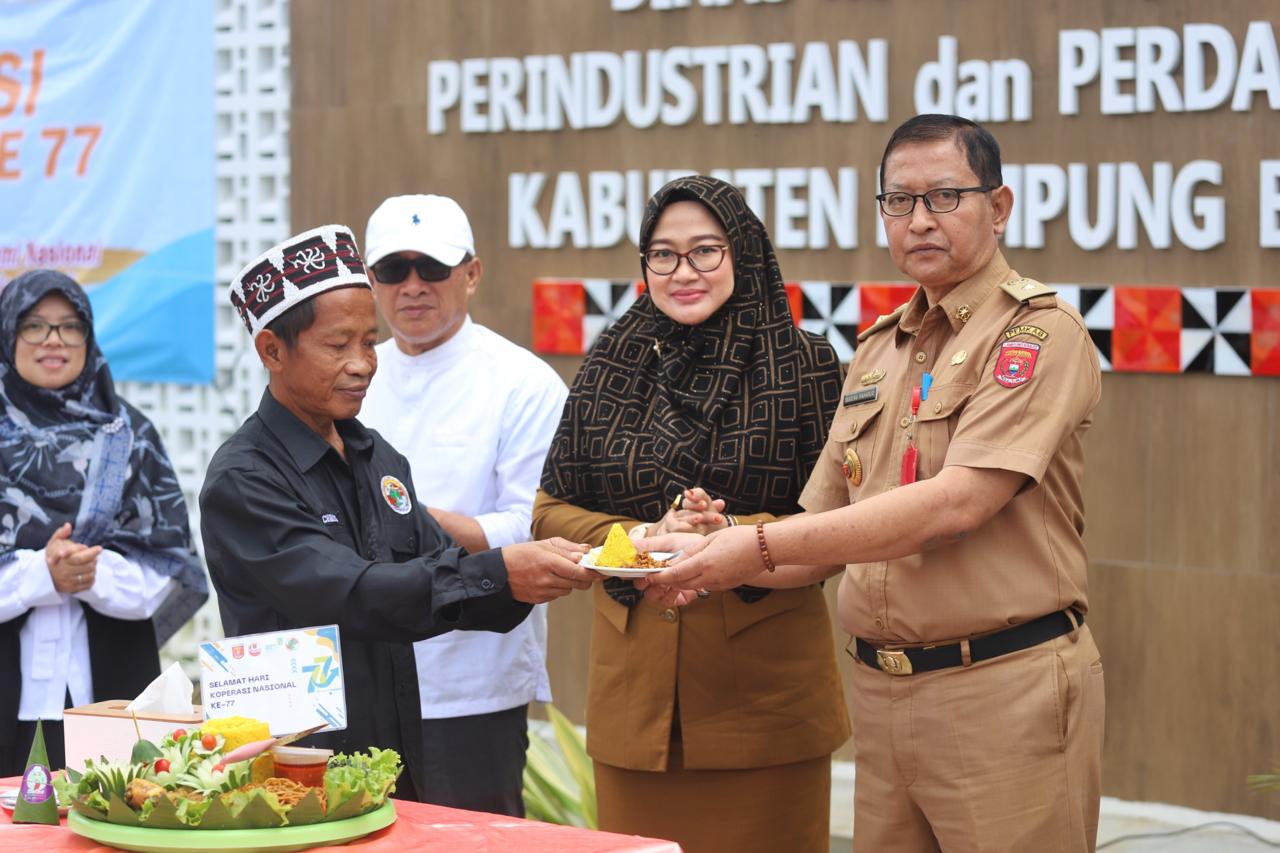Pj Bupati Lampung Barat Drs. Nukman M.M diwakili Asisten Bidang Perekonomian dan Pembangunan Ir. Sugeng Raharjo bertindak selaku pembina upacara peringatan hari koperasi ke 77 tingkat Kabupaten Lampung Barat di pelataran gedung Pusat Promosi dan Pusat Pelayanan Terpadu (Plut) Kecamatan Balik Bukit, Selasa 30 Juli 2024.
