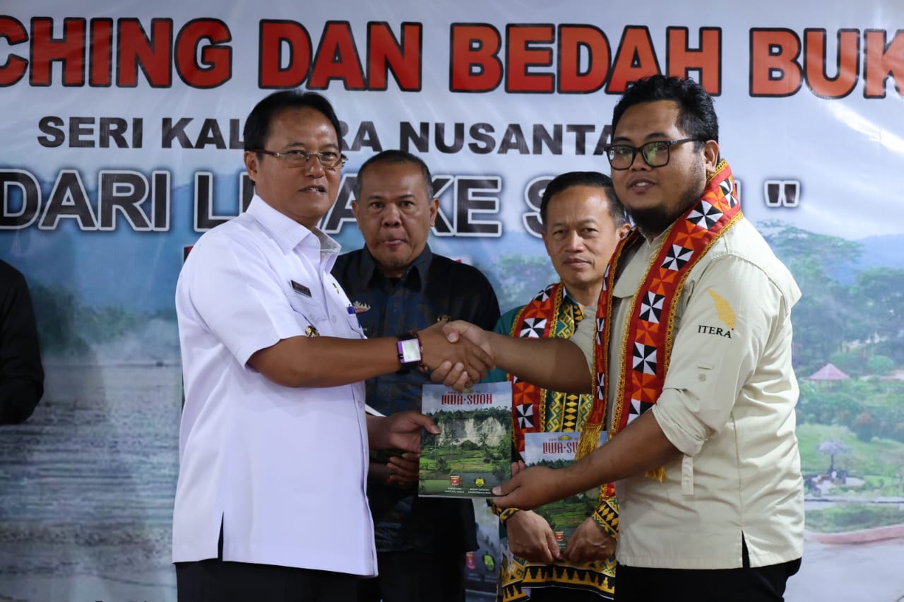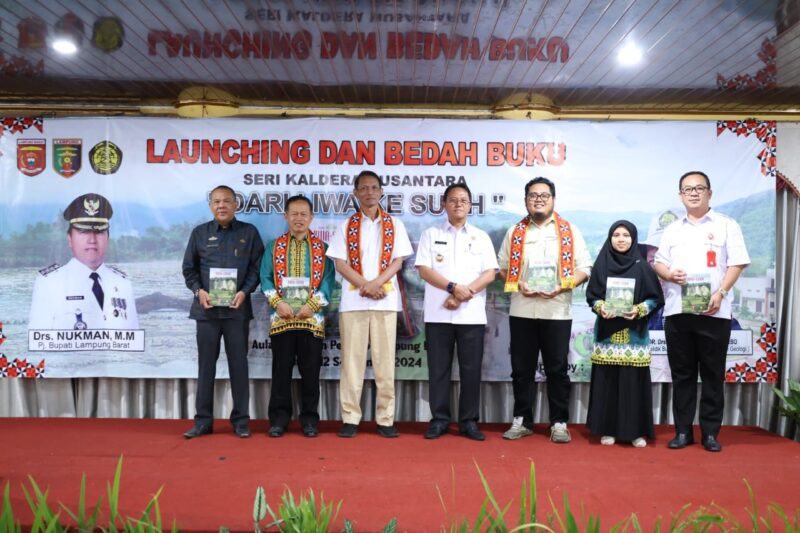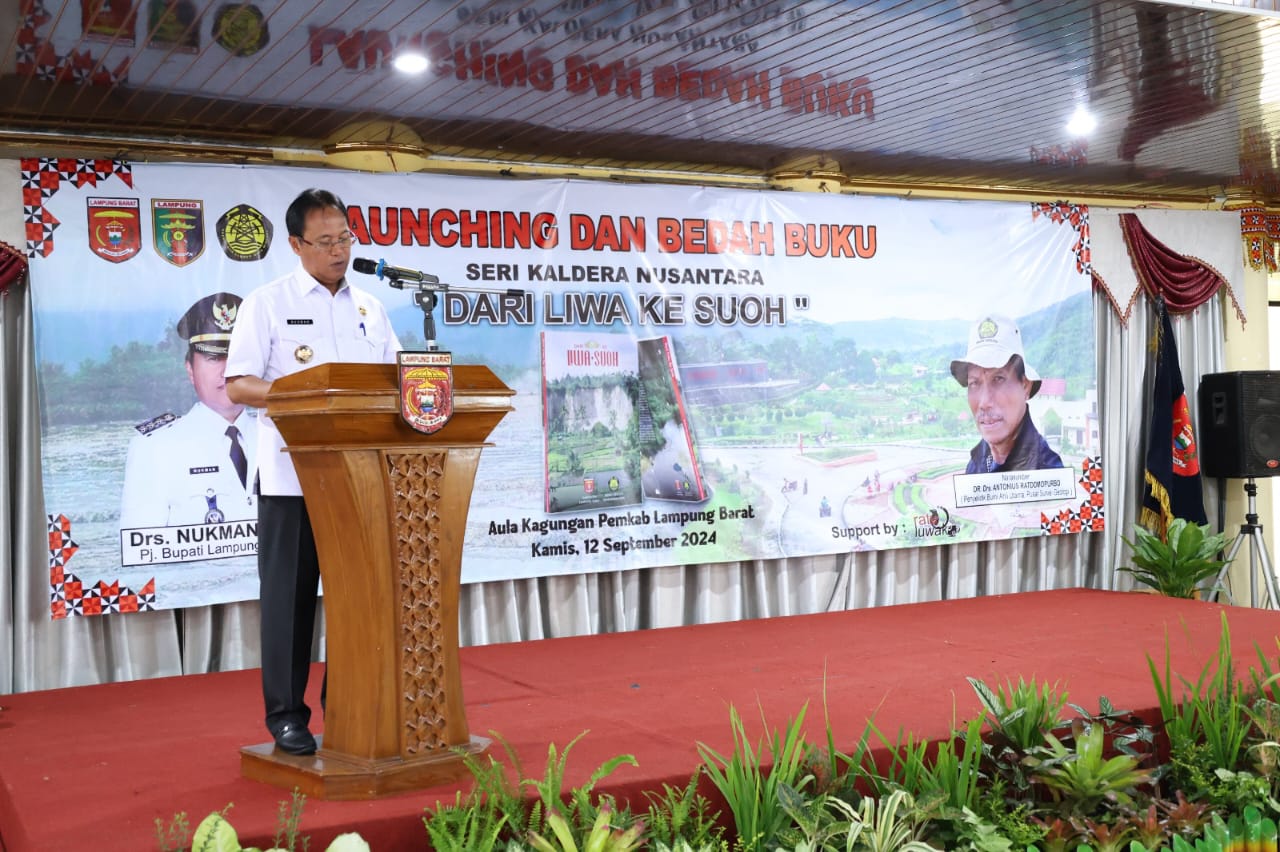 Penjabat (Pj). Bupati Lampung Barat Drs. Nukman M.M mengapresiasi peluncuran buku Seri Kaldera Nusantara dari Liwa ke Suoh yang berlangsung di Aula Kagungan Setdakab, Kamis 12 September 2024.
