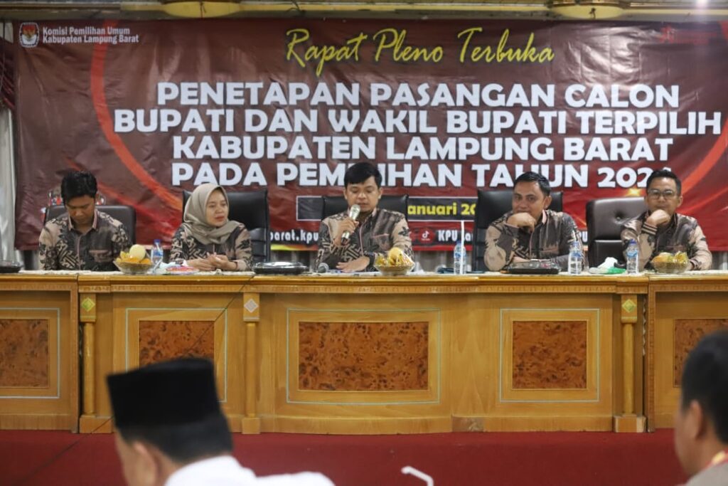 Sementara, ketua KPU Lampung Barat Doni Risandi mengungkapkan penetapan tersebut merupakan proses tahapan penghujung Pemilukada di tingkat Kabupaten Lampung Barat.