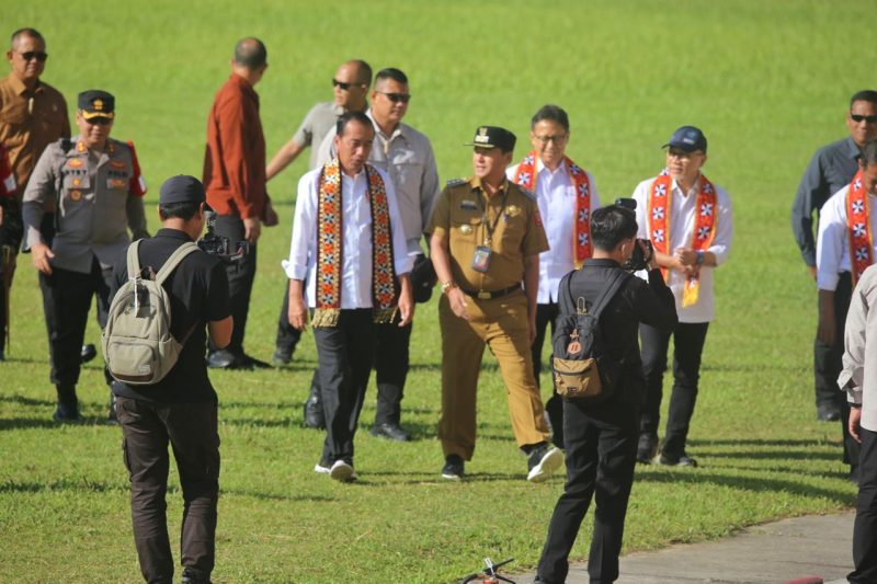 Kehadiran Presiden Jokowi disambut Bupati Lampung Barat Nukman, Dandim 0422/Lampung Barat Letkol Inf. Rinto Wijaya, dan Kapolres Lampung Barat AKBP Ryky Widya Muharam.