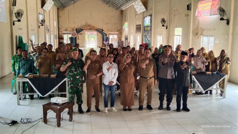 Dinas P3A, PP Dalduk menggelar sosialisasi yang di hadiri Forkopimcam, tokoh Agama dan organisasi Kemasyarakatan di Balai Desa Karyatani, Kecamatan Labuhan Maringgai, Lampung Timur, Senin (8/9/2025).