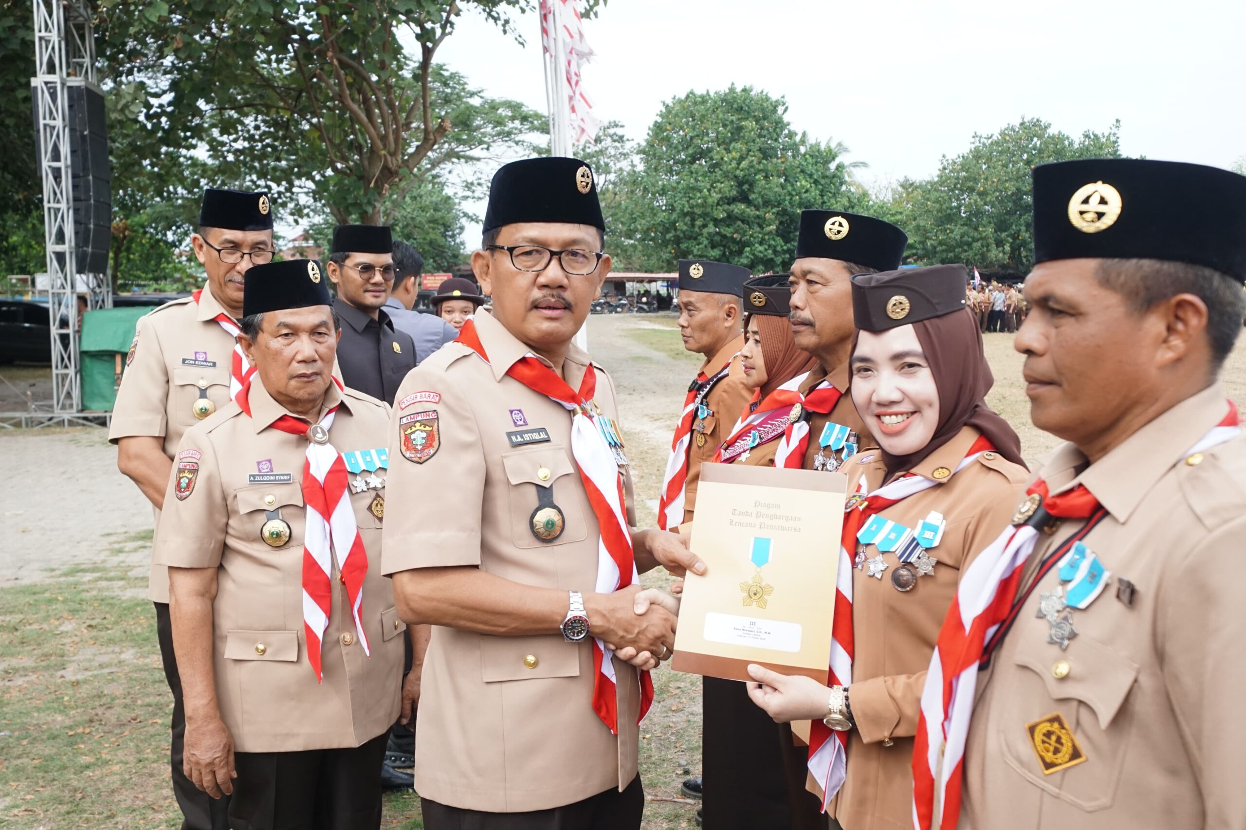 Dalam rangkaian Apel Hari Besar Pramuka ke-63 oleh Kwarcab Gerakan Pramuka Pesibar, diwarnai penyematan Tanda Penghargaan Lencana Pancawarsa kepada 32 orang penerima dan penyerahan piagam peringkat akreditasi Gugus Depan Kwarcab Gerakan Pramuka Pesibar Tahun 2024 kepada delapan Gugus Depan, serta diakhiri dengan pelepasan peserta Festival Pramuka oleh Bupati.