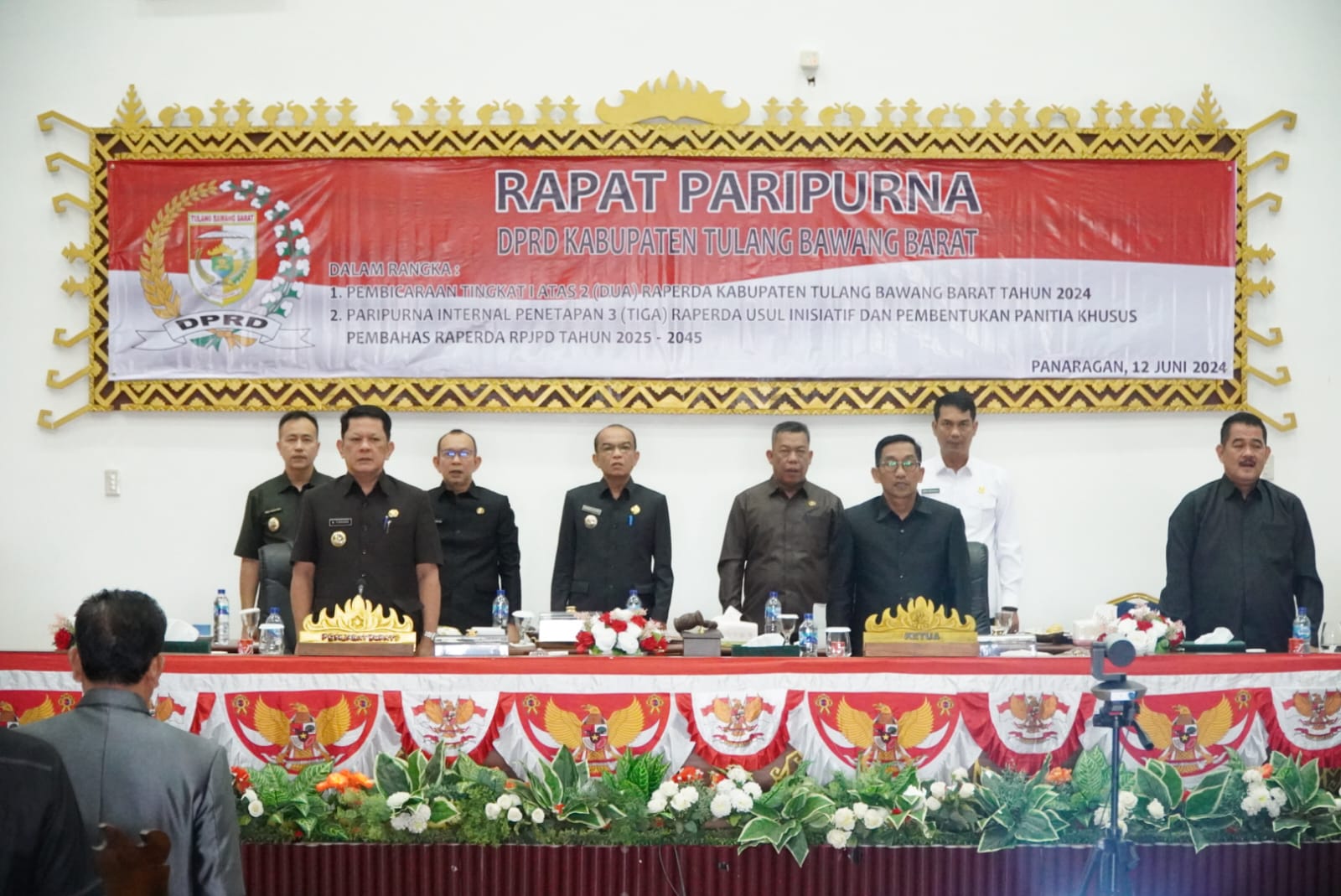 Dengan Demian dalam Agenda Rapat Paripurna ini, kami Pemerintah Daerah Kabupaten Tulang Bawang Barat juga akan menyampaikan Raperda tentang Rencana Pembangunan Jangka Panjang Daerah (RPJPD) Kabupaten Tulang Bawang Barat Tahun 2025-2045.