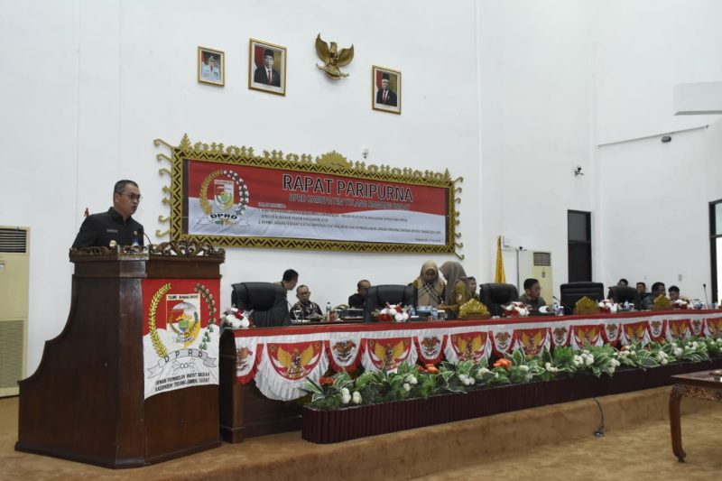 Sekretaris Daerah (Sekda) Kabupaten Tulang Bawang Barat (Tubaba) Ir. Novriwan Jaya, S.P., Menghadiri Rapat Paripurna Penyampaian KUA-PPAS APBD-P Tahun Anggaran 2024 dan Pembicaraan Tingkat II atas Raperda RPJPD Tahun 2025-2045. Di Ruang Paripurna DPRD setempat, Senin (15/07/2024)