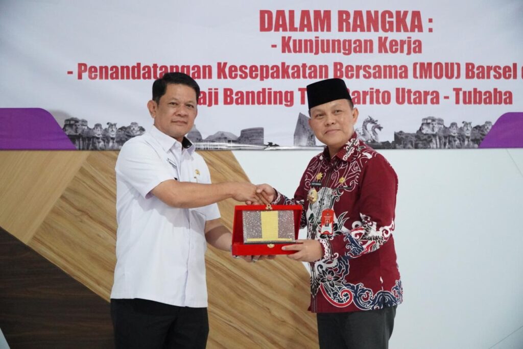 Penjabat (PJ) Bupati Tulang Bawang Barat (Tubaba) menyambut langsung kedatangan Jajaran Pemerintah Kabupaten Barito Selatan, Barito Utara, Barito Timur Provinsi Kalimantan Tengah, di Aula Kantor Dinas Kependudukan dan Pencatatan Sipil. Rabu (16/10/2024)
