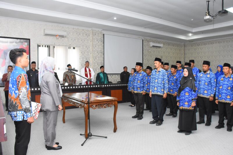 Pelantikan tersebut disaksikan oleh Asisten Bidang Administrasi Umum, serta Pejabat Tinggi Pratama dan administror dilingkup Pemkab setempat.