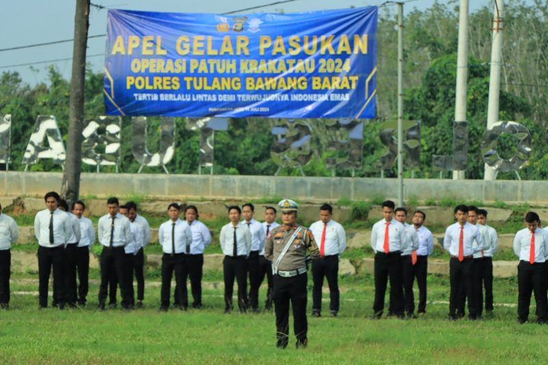 Polres Tulang Bawang Barat Polda Lampung melaksanakan apel gelar pasukan Operasi Patuh Krakatau 2024 di Halaman Lapangan Apel Mapolres tubaba, Senin (15/07/24) Pagi