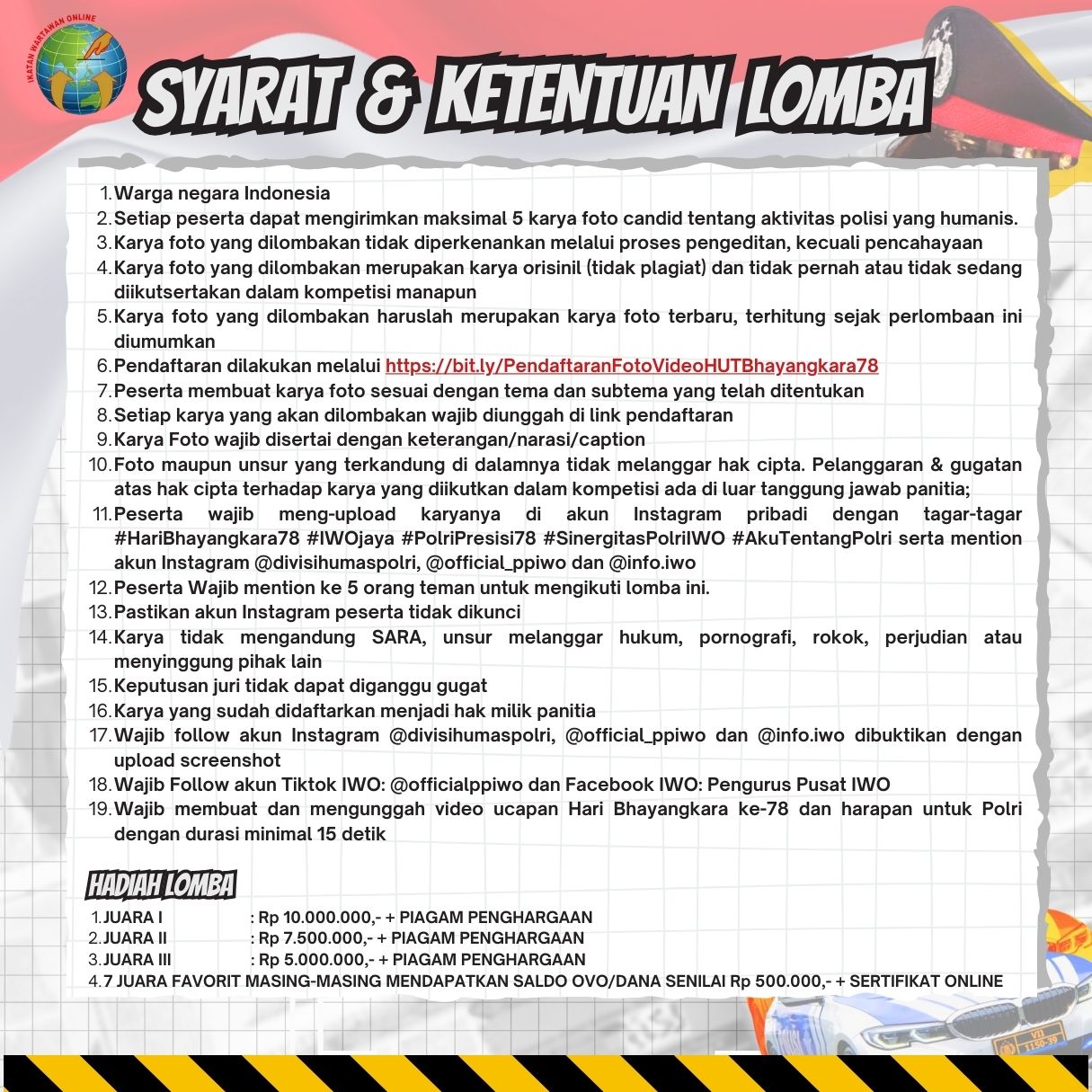 Semarakkan HUT Bhayangkara ke 78, PP IWO Gelar Lomba Bagi Netizen Berhadiah Puluhan Juta Rupiah